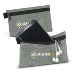 Crafted from durable 300D polyester, it features a stylish two-tone heather finish. The black zippered closure keeps your items secure, while the woven loop allows easy attachment or hanging.