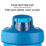 Authentic BlenderBottle, for mixing protein shakes and smoothies, features an easy-open/easy-close push-button flip cap with a sliding lock to prevent accidental opening.