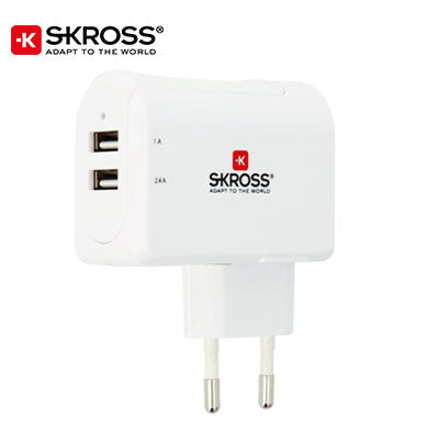 Compatible in over 160 countries, this charger is your reliable companion for all your adventures. Stay connected wherever you are with the SKROSS 2 Port USB Charger - EURO.