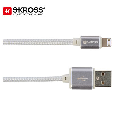 Introducing the SKROSS Lightning Connector Cable - Steel Line, a premium accessory that seamlessly blends style and functionality. Its striking silver color adds a touch of elegance to your tech collection.