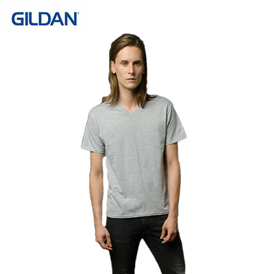 The Gildan Cotton Adult V-Neck T-Shirt is a high-quality and comfortable option for everyday wear. Made from 150 g/m2 (4.5 oz per sq yd) of 100% ring-spun cotton preshrunk jersey knit, this t-shirt is soft and durable. The fiber content varies by color, giving you a range of options to choose from. It features a taped neck and shoulders, as well as a tearaway label for added comfort. The 5/8' mitered v-neck collar and rolled-forward shoulders provide a better fit, while the quarter-turned design eliminates the center crease. Available in sizes XS-2XL, this t-shirt is suitable for both men and women.
