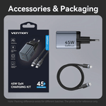The Vention 2-Port GaN Charger 45W with Cable (1M) is a powerful and efficient charging solution for your devices. Utilising GaN technology, it offers fast charging capabilities with PD3.0 and PPS, ensuring your devices charge quickly and safely.