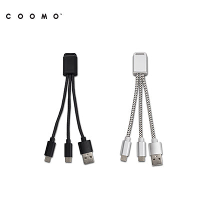 The COOMO TRICA 3-in-1 CHARGING CABLE is a versatile and convenient product that allows you to charge multiple devices with just one cable. With its 3-in-1 design, it is compatible with most smartphones, tablets, and other electronic devices. Its stylish design adds a touch of sophistication to your charging routine. This cable is truly a one-for-all solution, eliminating the need for multiple cables and reducing clutter. Made with high-quality materials, it offers strength and durability, ensuring a long-lasting and reliable charging experience. AbrandZ is your go-to supplier for corporate gifts in Singapore, and the COOMO TRICA 3-in-1 CHARGING CABLE is just one of the many innovative products we offer.