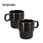Introducing the Keepsake Stackable Coffee Cup Set of 2, a perfect blend of style and functionality. Each rustic ceramic mug holds 350ml, making them ideal for your favorite beverages.