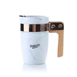 The Marble Ceramic Mug with SS Rim and Wooden Handle is a stunning addition to your drinkware collection. This elegant mug features a beautiful marble pattern on its white ceramic body, complemented by a shining rose gold stainless-steel rim.