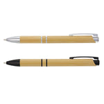Introducing the Panama Bamboo Pen, a perfect blend of sustainability and elegance. Crafted from eco-friendly bamboo, this retractable ballpoint pen features a sleek barrel adorned with shiny chrome trim, making it a stylish addition to any desk.