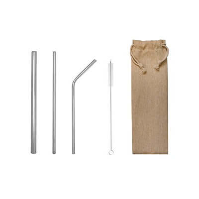 Introducing the Stainless Steel Straw Set with Canvas Pouch, a perfect eco-friendly solution for your drinking needs. This set includes five durable stainless steel straws, designed to reduce plastic waste while enhancing your beverage experience.