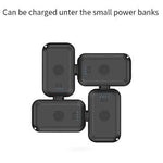 With dimensions of 140mm x 76mm x 20mm for the charging base and 61mm x 39mm x 13mm for each mini power bank, it is compact and portable. The power bank is made from durable ABS, PC, and aluminum alloy materials, available in sleek black and white colors.