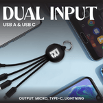 With its unique 3 in 2 design, you can charge multiple devices simultaneously, thanks to USB-A and USB-C inputs along with micro, type-C, and lightning outputs. Crafted from high-quality ABS and aluminum, this sleek black cable is both durable and stylish.