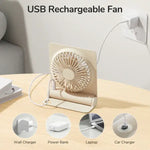 This desk fan is powered by a 4500mAh USB rechargeable battery, making it portable and convenient. Enjoy a long runtime of 4-16 hours, with a full charge in just 3-4 hours, ensuring minimal downtime.