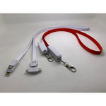 Lanyard 4 in 1 is a versatile charging cable that can be worn around your neck for easy access. Made with durable nylon material, this cable features a USB and type C input with 3 output options (Micro USB, Lightning, and USB type C). It has a current of 1.0A to 1.6A and comes in four different colors: black, white, red, and blue.