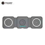 Introducing the Mazer Mag Trifold 3-in-1 Foldable Wireless Charger, the ultimate charging solution for your Apple devices. This sleek and stylish charger allows you to power up your iPhone, Apple Watch, and AirPods simultaneously with a total output of 23W.
