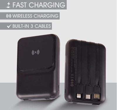 Introducing the Fast Charging Wireless Powerbank with Built-In 3 Cables, a perfect blend of convenience and efficiency. Measuring 11.2cm in height, 6.5cm in length, and 2.4cm in width, this sleek powerbank is designed for portability.