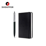 The Sheaffer Medium Notebook complements the pen beautifully, boasting a durable hardbound black leatherette cover. With 160 ruled pages made from 90gsm fountain pen-friendly paper, it ensures a smooth writing experience. Compact and portable, this gift set is ideal for capturing thoughts and ideas on the go.