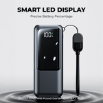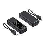 Crafted from durable ABS material, this sleek power bank is available in black and white. Weighing just 176g and measuring 9.75cm x 3cm x 4cm, it’s perfect for on-the-go charging. The package includes a quick charge USB-C cable and a user manual, all neatly presented in a stylish black folding box.