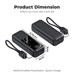 Introducing the World's Smallest Quick Charger Powerbank, a compact powerhouse with a capacity of 10,000mAh. Designed for efficiency, it doubles the charging speed of standard power banks, ensuring your devices are powered up in no time.