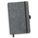 The RPET Felt Hard Cover Notebook is a stylish and eco-friendly choice for your note-taking needs. This medium-sized notebook, approximately A5, features a hard cover made from recycled post-consumer polyester, promoting sustainability.