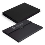 The Lancaster Portfolio is a stylish and functional accessory designed for professionals. Made from high-quality PU leather, it features a sleek dome closure and a convenient pen loop.