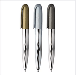 This twist ballpoint pen has a futuristic design and an ergo-dynamic shape, making it comfortable to hold and write with. The chrome-plated barrel and cap are made of resin with metallic lacquering, giving the pen a high-quality and sophisticated look.