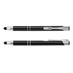 The Panama Stylus Pen is a versatile writing instrument designed for both traditional and digital use. Its retractable aluminium body features a sleek anodised finish complemented by shiny chrome accents, making it a stylish addition to any desk.