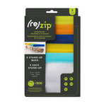 The Rezip Stand-Up 1-cup | 8-ounce Leakproof Reusable Storage Bag 5-pack is perfect for both home and on-the-go use. These bags come in a variety of vibrant colors, including moss green, orange, aqua, blue, and yellow, making them not only functional but also stylish.
