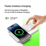 Belkin WIZ019 MagSafe 2-in-1 Wireless Charging Pad is the perfect solution for charging your iPhone 14/13/12 and AirPods simultaneously. With fast charging capabilities of up to 15W, you can quickly power up your new iPhone. The MagSafe technology ensures a seamless wireless charging experience. Additionally, you can also charge a second device on the 5W Qi pad. Its lay-flat, modern, and compact design makes it ideal for travel. An LED light indicates when your AirPods are charging correctly. The product comes in 100% plastic-free packaging and is made from post-consumer recycled materials*. It also comes with a $2,500 Connected Equipment Warranty (CEW).