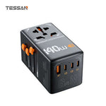 Introducing the TESSAN 140W Universal Travel Adapter GaN Charger, the perfect companion for your travels. This compact device features both USB-C and USB ports, allowing you to charge multiple devices simultaneously with ease.