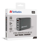The Verbatim 4 Port 100W PD 3.0 & QC 3.0 GaN Travel Charger is the ultimate solution for tech-savvy travelers. Its advanced GaN technology ensures a compact design that delivers powerful performance without the bulk.