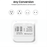 Introducing the World Travel Adaptor with 2 USB-A + 1 USB-C PD20W Quick Charge - the ultimate travel companion for all your electronic devices. This compact and versatile adaptor is designed to make your travels hassle-free and convenient. With 2 USB ports (QC3.0) and 1 Type-C port (PD20W), you can charge multiple devices simultaneously and quickly.Safety is our top priority, which is why this adaptor comes with built-in safety shutters to protect you and your devices. It is also compatible with outlets in the US, UK, EU, and AUS, making it the perfect choice for all your international travels.Made from high-quality ABS material, this adaptor is durable and lightweight, weighing only 100g. Its compact size of 5.9cm x 5.9cm x 4.5cm makes it easy to pack and carry with you wherever you go. It comes in a sleek black color, adding a touch of sophistication to your travel essentials.The World Travel Adaptor comes packaged in a grey drawstring pouch and a black folding box, making it a great gift for your loved ones who love to travel. You can also choose from various printing options, including laser marking, silk screen, or UV full-color printing, to customize the adaptor with your logo or design.This adaptor has an electrical rating of 110V-240V and an input of 6A, making it suitable for use in most countries. The total output of QC3.0 + PD20W ensures fast and efficient charging for all your devices. Don't let different outlets and voltage levels slow you down - travel with ease and convenience with the World Travel Adaptor.