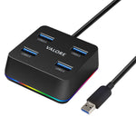 The Valore 4-in-1 USB Hub with RGB Lighting (VUH-29) is the perfect solution for connecting multiple devices seamlessly. With the ability to connect up to four USB devices, it offers impressive transmission speeds of up to 5Gbps, ensuring efficient data transfer.