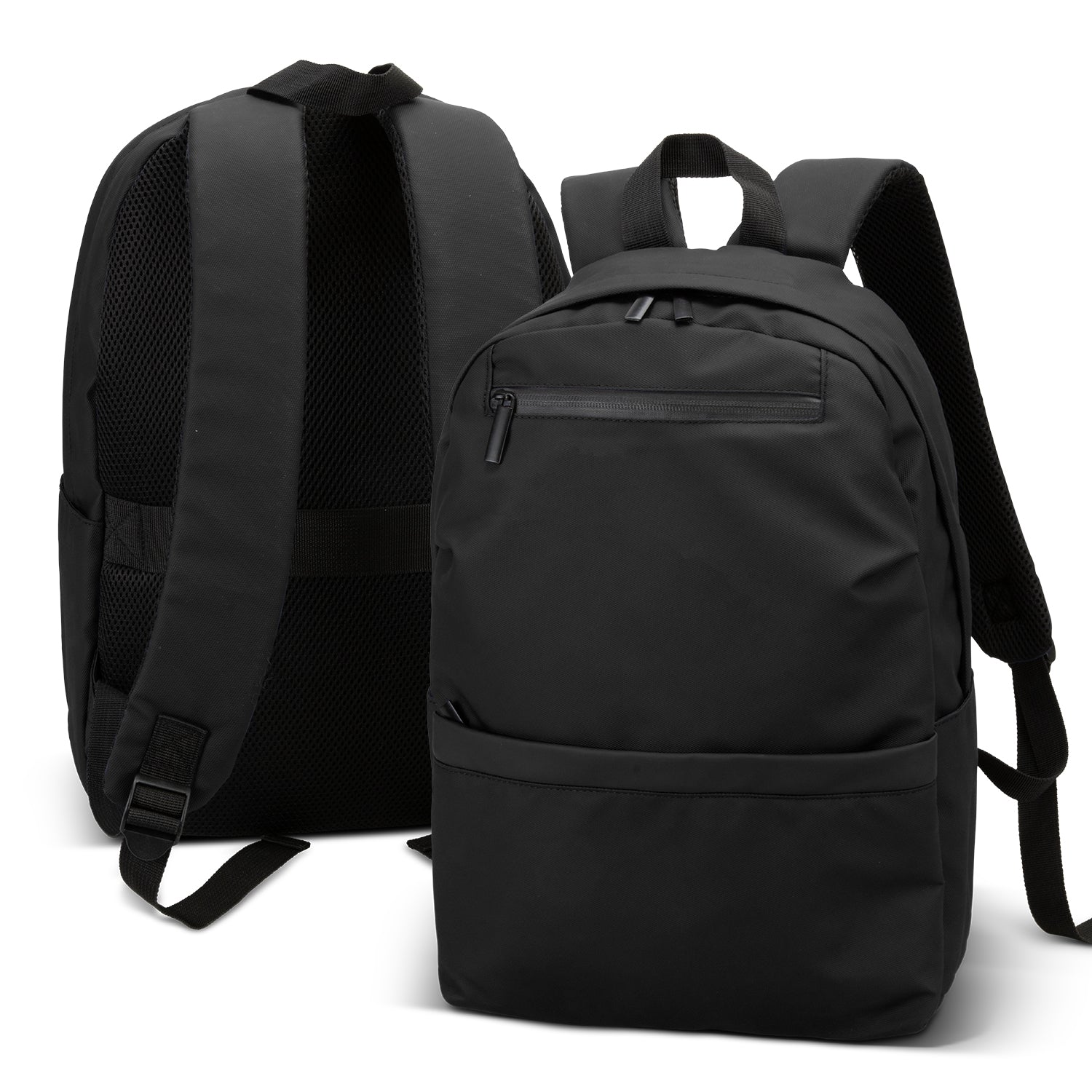 Crafted from durable 600D polyester with a soft-touch PU coating, this backpack features a padded internal sleeve that fits laptops up to 16 inches. It includes a zippered main compartment and two external pockets for easy organization.