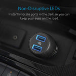 Sleek and convenient, the ultra-compact design of this car charger allows it to stay out of the way when plugged in. The soft LED light makes it easy to find your ports at night, while the anti-slip carbon-fiber mesh grip ensures easy removal and orientation.