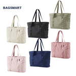 The Bagsmart Zoraesque Tote is a modern and practical twist on the timeless tote bag design. With its soft handles, this tote offers comfort and convenience for carrying. The side pockets allow for easy access to water bottles or other frequently used items. This cute tote bag is suitable for various purposes, including work, school, gym, or casual outings. It provides ample space in the main compartment to accommodate laptops up to 15.6' in size, ensuring the safety of your electronic devices during transport. The Tote combines style and functionality, making it a versatile accessory for daily use. Its contemporary and trendy design adds a fashionable touch to any outfit or occasion. With 3 main compartments and 2 side pockets, this tote offers ample storage space. It weighs 1.3 lbs and has dimensions of 15.25' L x 6' W x 12.5' H, with a capacity of 18L. Made of high-quality nylon fabrics, this tote is durable and long-lasting. Elevate your style and stay organized with the Bagsmart Zoraesque Tote.