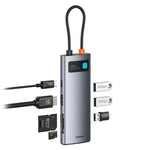 Introducing the Baseus Joystar 7 in 1 USB-C Hub - the ultimate solution for all your peripheral needs. With just one dock, you can easily connect to DP, HDMI, USB-C, USB-A, WAN ports, and SD/TF card reader, making multitasking a breeze.