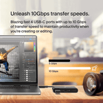 Experience lightning-fast data transfer speeds of up to 10Gbps. The Fast Role Swap (FRS) feature ensures no data loss when connecting or disconnecting power sources. Additionally, it supports audio devices, including USB-C headphones and speakers.