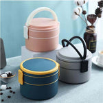 With a generous capacity of 450ml in the top compartment and 950ml in the bottom, this lunch box offers ample space for your favorite dishes. It comes in stylish colors: blue and grey, making it a trendy choice for any lunch.