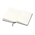 A5 sized classic office notebook for daily usage. Comes with elastic closure and back cover pocket compartment for storing of notes. Dimension: A5. Colour: Black. Material: Leatherette paper bound cover, 80gsm lined paper.