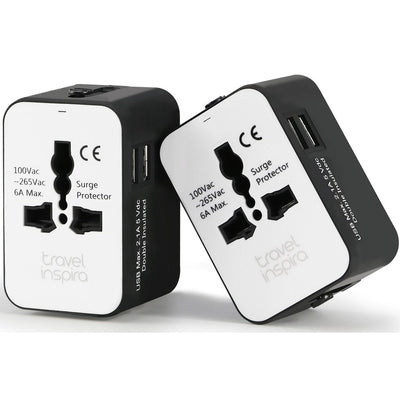 Introducing the Dual USB Port Travel Adapter - the ultimate solution for your charging needs while traveling. With its universal compatibility, this adapter can accept plugs from over 150 countries, including US/EU/UK/AU European plugs. Say goodbye to the hassle of carrying multiple adapters for different countries.