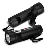 The Dynamo Rechargeable Torch is a practical and stylish lighting solution. Its sleek, matte-black design with silver trim makes it a perfect accessory for any situation.