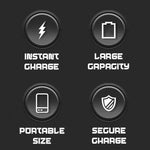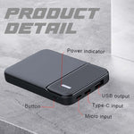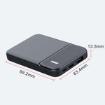 Weighing just 103g and measuring 10 x 6.5 x 1.4cm, it’s lightweight and portable. The sleek black ABS material adds a modern touch. With a capacity of 5000mAh, it features Micro and USB-C input options, providing a quick recharge time of 3-5 hours.