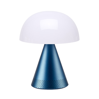 The LEXON Mina L Audio Large Portable LED Lamp & 5W Bluetooth Speaker is a versatile addition to any space. Crafted from durable aluminum and ABS, it combines functionality with style, available in Dark Blue, Grey, Gold, and Silver.