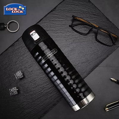 Lock & Lock Wave One Touch Thermal Tumbler 450ml features an elegant pearl black color complemented by a sleek wave design. This unique design not only enhances aesthetics but also provides a comfortable and stable grip.
