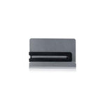 Measuring 5.3cm x 9.2cm, this stand is compact yet functional. Crafted from durable aluminium, it boasts a sleek dark grey finish that complements any desktop environment. Additionally, it can double as a business card holder, making it a versatile addition to your office supplies.