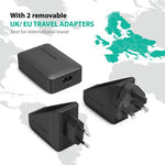 The RavPower 4 Port Travel Wall Charger combines convenience and versatility, making it the perfect companion for your travels. With one charger and three options, you can customize your setup by choosing between a 5ft cable or two adapters with EU/UK plugs.