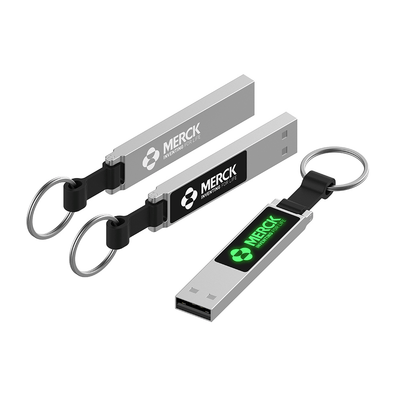 Introducing the Rectangular USB Flash Drive with Keyring Strap and LED Logo, a perfect blend of style and functionality. Crafted from durable metal in a sleek Silver Gun color, this flash drive is designed to impress.