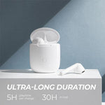 Enjoy up to 30 hours of working time, with 5 hours of playtime from a single charge. The compact charging case provides five additional charges, ensuring your music never stops.