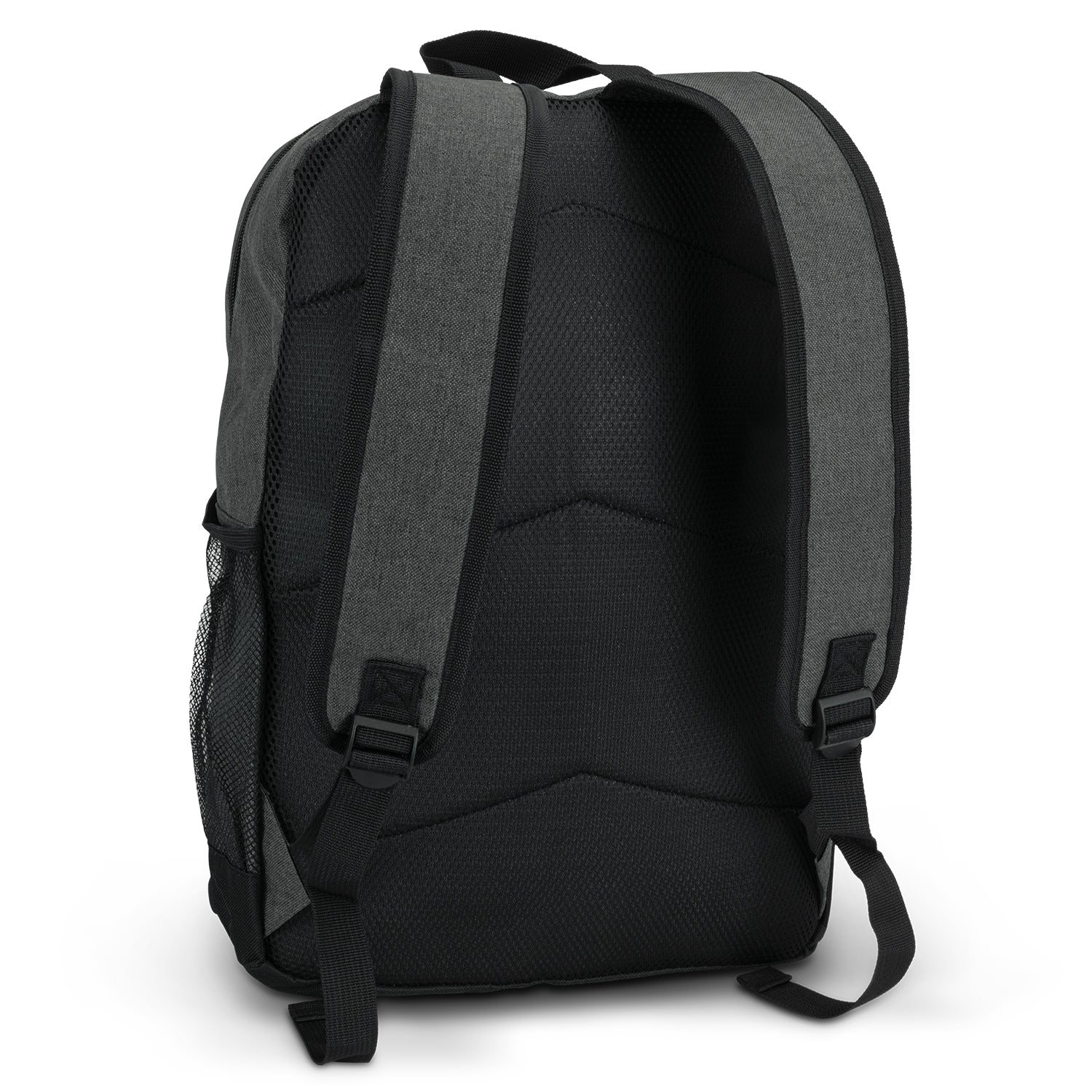 The Traverse Backpack is a stylish and functional accessory crafted from durable poly-canvas with a trendy heather-style finish. Designed for comfort, it features adjustable padded woven straps and a soft padded back.