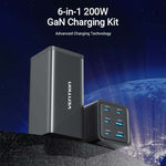 The Vention 6-Port USB Desktop GaN Charger redefines efficiency in charging. With cutting-edge GaN technology, it delivers an impressive 200W maximum power output, ensuring your devices are powered up quickly and reliably.