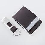 The Voyaran Double Side Name Card Holder with Keychain is a stylish and functional accessory for professionals. Designed with two divisions, it securely holds your business cards with a magnetic closure and features a luxurious velvet interior.