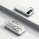 Introducing the Wireless Powerbank with Detachable Cable and built in Phone Stand, the ultimate solution for on-the-go charging. This sleek and stylish powerbank features a compact design, making it perfect for any lifestyle.